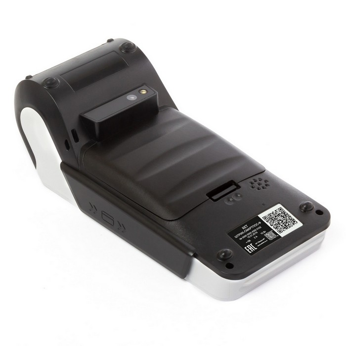 Терминал будет полезен на доставке и в местах с перебоями подачи электричества. В гаджет встроен аккумулятор. Термопринтер печатает со скоростью 90 мм/сек, чего вполне достаточно для организаций с небольшим либо средним потоком клиентов. Автоотрезчик отсутствует. Вместо него установлена надежная гребенка для ручного отреза чеков.